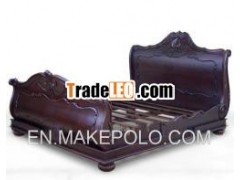 SLAVIA BED, WITH CARVINGS, MADE FROM MAHOGANY.